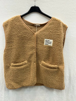 Diese kuschelige Weste für Erwachsene liegt voll im Trend und bietet dank ihres weichen Materials ein besonders angenehmes Tragegefühl. Die Weste ist mit Knöpfen ausgestattet und verfügt über zwei praktische Taschen auf der Vorderseite – ideal, um Hände zu wärmen oder kleine Essentials zu verstauen.