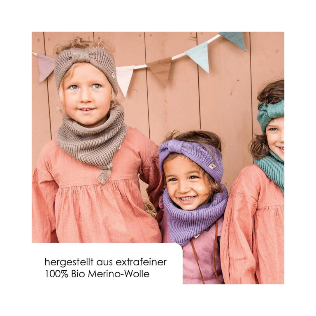 Das Besondere am Stirnband ist, dass es aus 100% BIO-Merinowolle extrafein - GOTS zertifiziert hergestellt wird. Dadurch garantieren wir warme Öhrchen zum Kuscheln. Unsere hochwertige Wolle hat außerdem temperaturausgleichende Eigenschaften, bleibt pillingfrei und das mitwachsende Design garantiert lange Freude am Lieblingsteil.