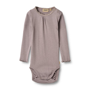 Der Langarm-Body von Wheat ist aus einer weichen Mischung aus Bio-Baumwolle, Modal und Elastan (OEKO-TEX® zertifiziert) gefertigt und besonders sanft zur Babyhaut. Mit zarten Spitzendetails am Halsausschnitt, Raffungen vorne und verspielten Frillkanten an den Ärmeln ist er ein süßes Basic für jeden Tag.